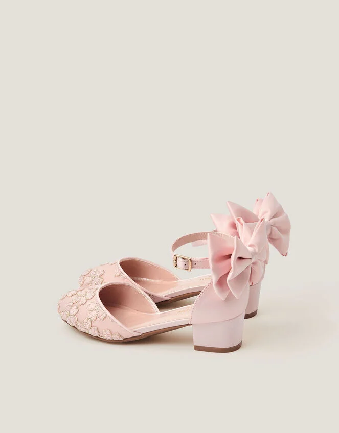 Fit for a princess. Delicately embroidered with flowers, these closed-toe heels feature a big bow above the chunky block heel with a buckle strap fastening at the ankle to finish. Your little one will adore them so much, they won’t want to take them off! Pink