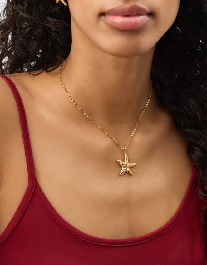 POV: you’re going on holiday. Bringing the magic of the sea wherever you wander, this necklace features a golden starfish pendant. Pretty, no?