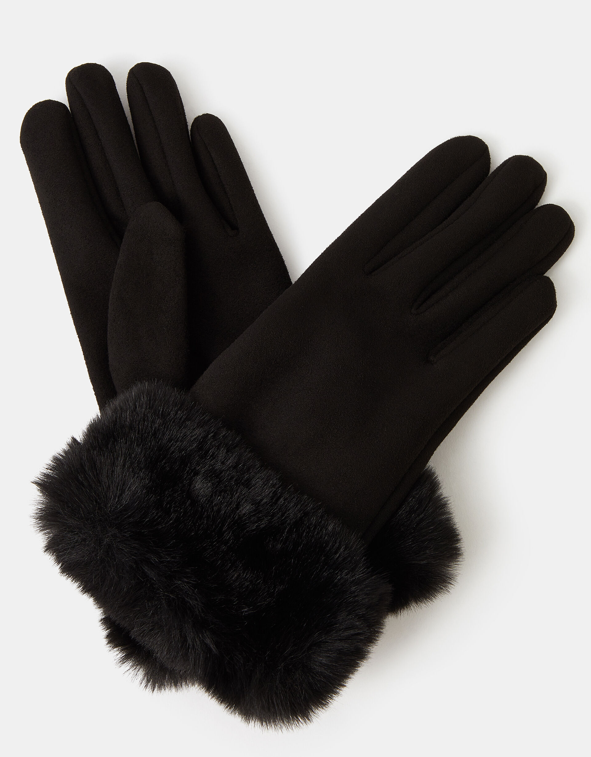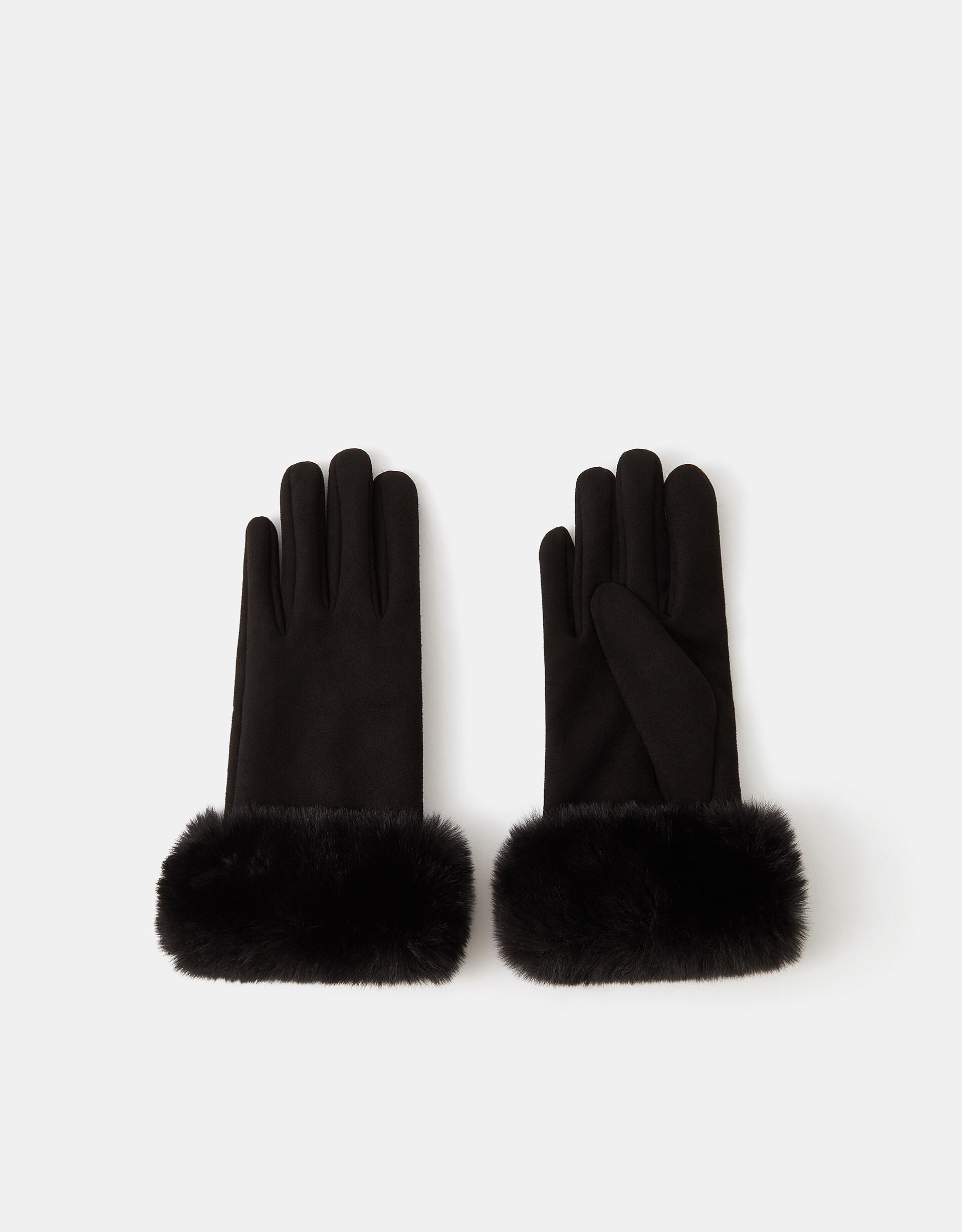 Keeping your hands warm in the chicest way possible. These soft suedette gloves are finished with big faux fur cuffs for a fancy feel. Black