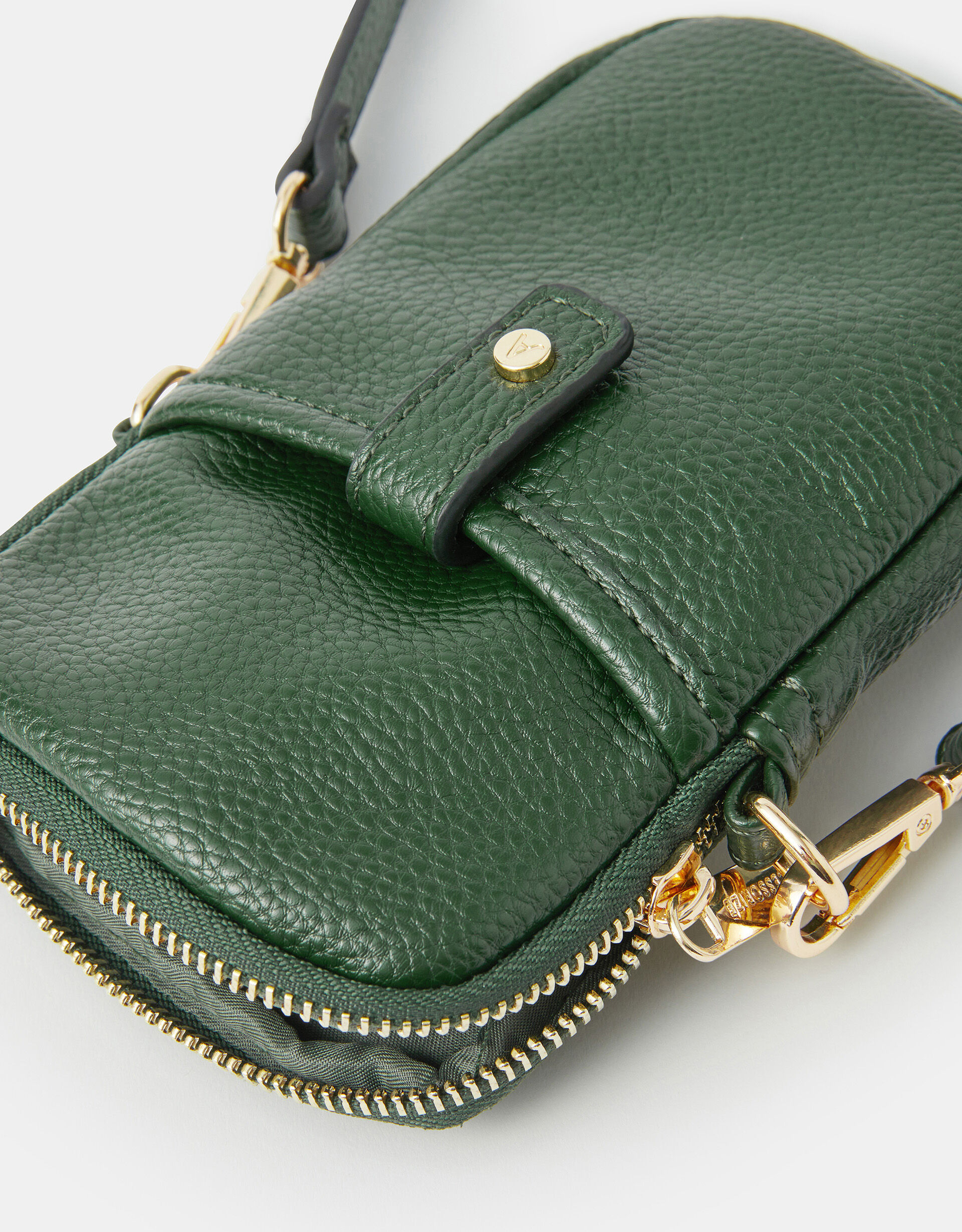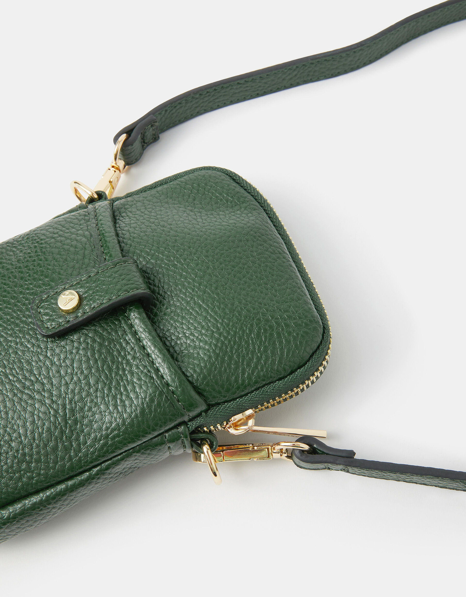 Giving your phone a chic little home, this faux leather bag is comprised of a phone-sized pouch with a slip pocket at the front. Complete with an adjustable crossbody strap, zip closure and tab fastening.