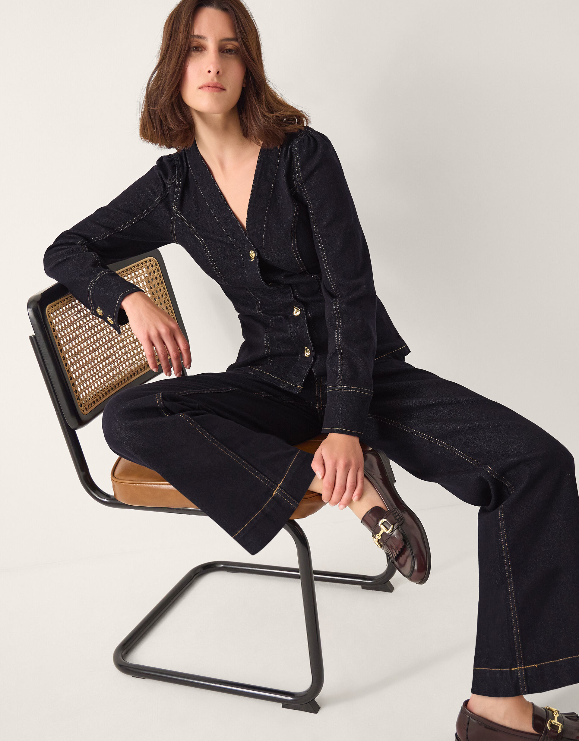 You’ve got great taste. Classic denim you can wear all year round, these jeans are slung high on the waist with wide leg cuffs and a slightly cropped finish. Complete with a front zipper, four pockets and contrast stitching. Want to double it up? There’s a matching shirt that pairs perfectly. Blue