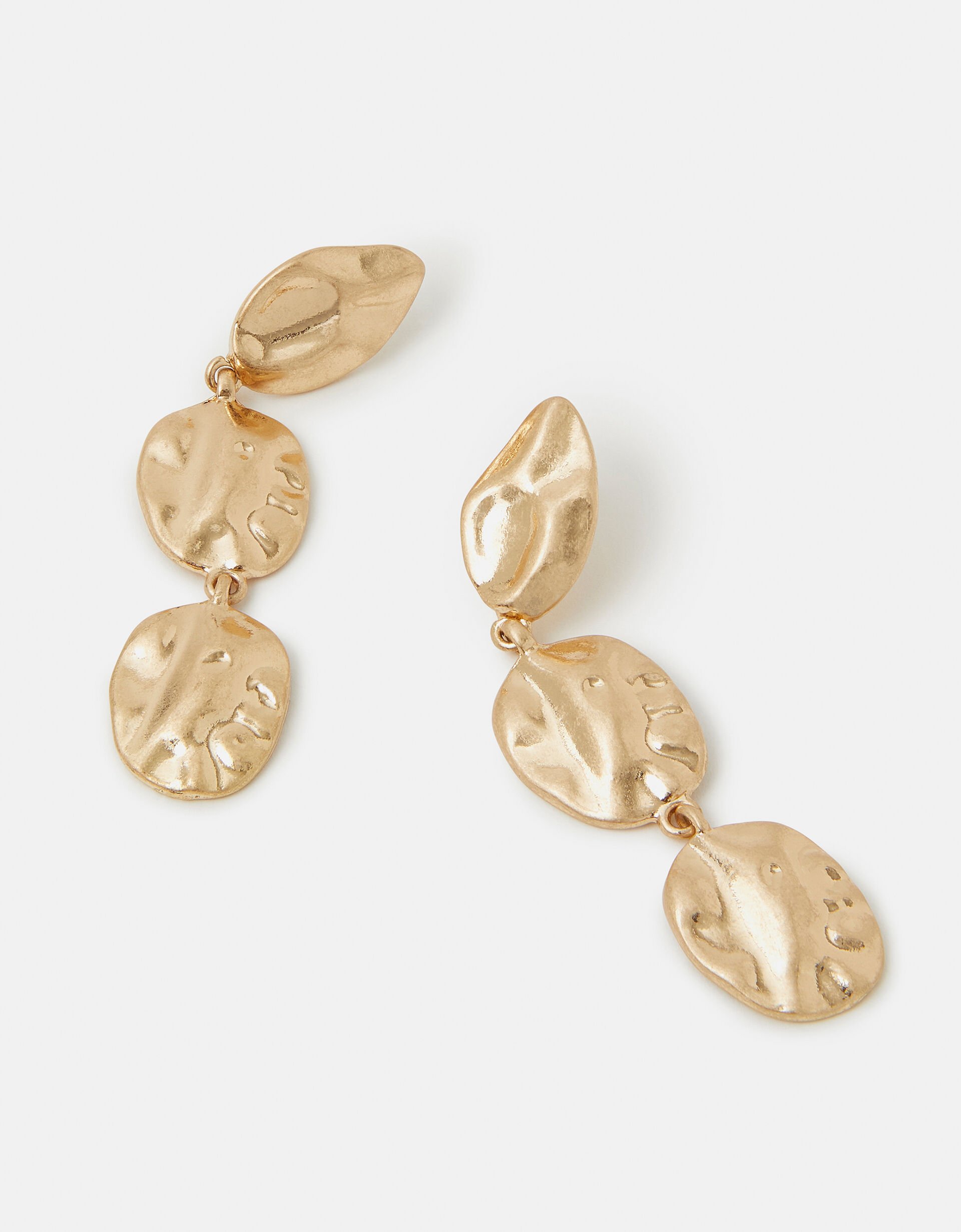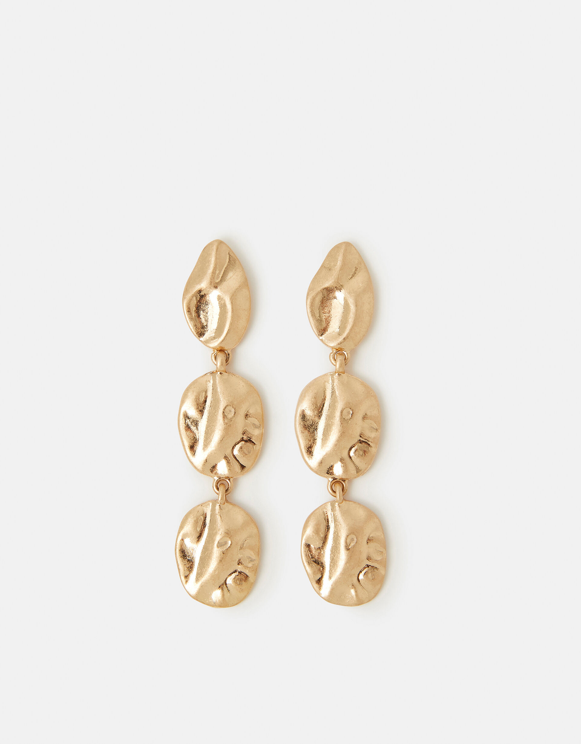 Brushed in a golden tone with a textured finish, these coin drop earrings are a statement pick for your night-out looks. Non-refundable.