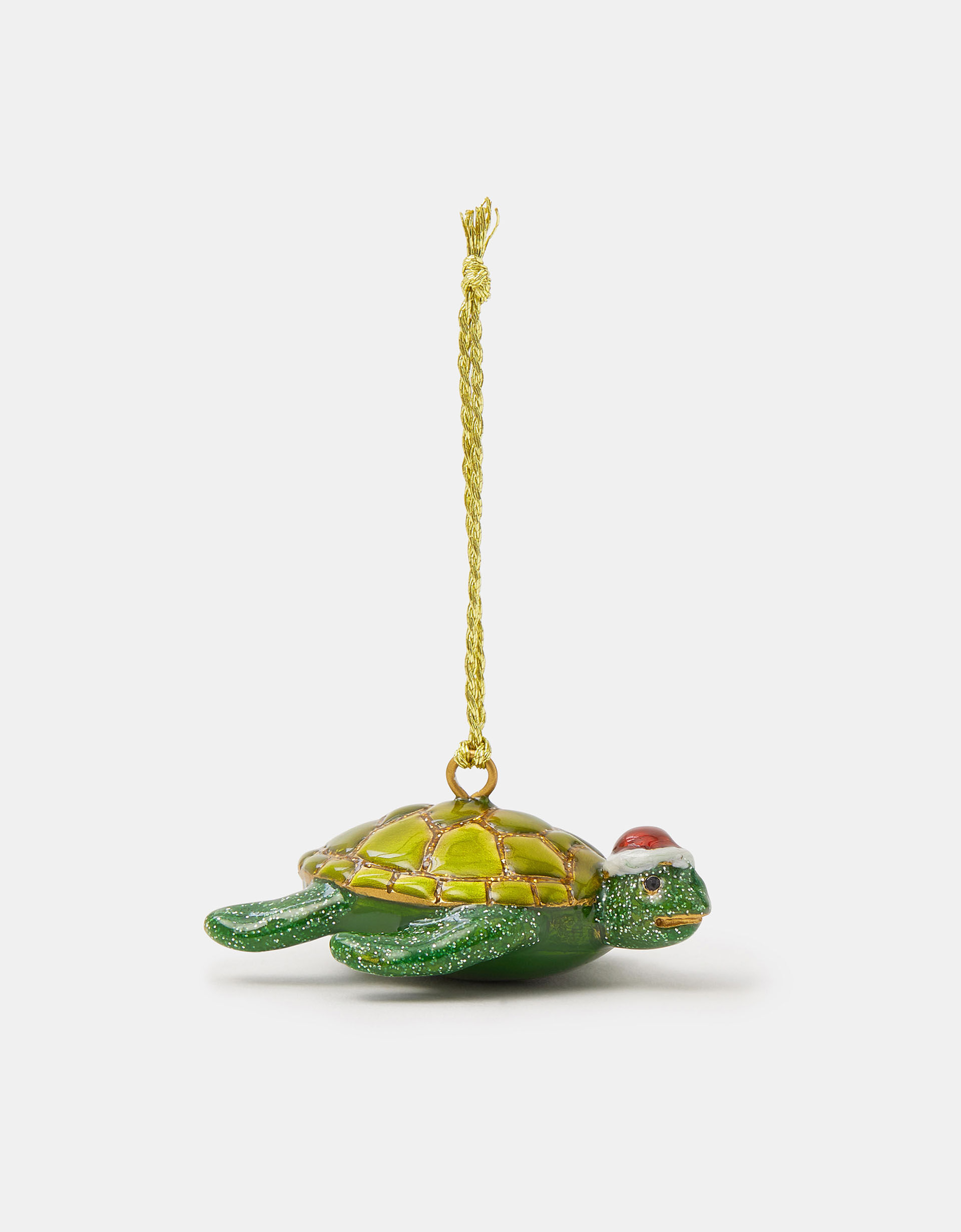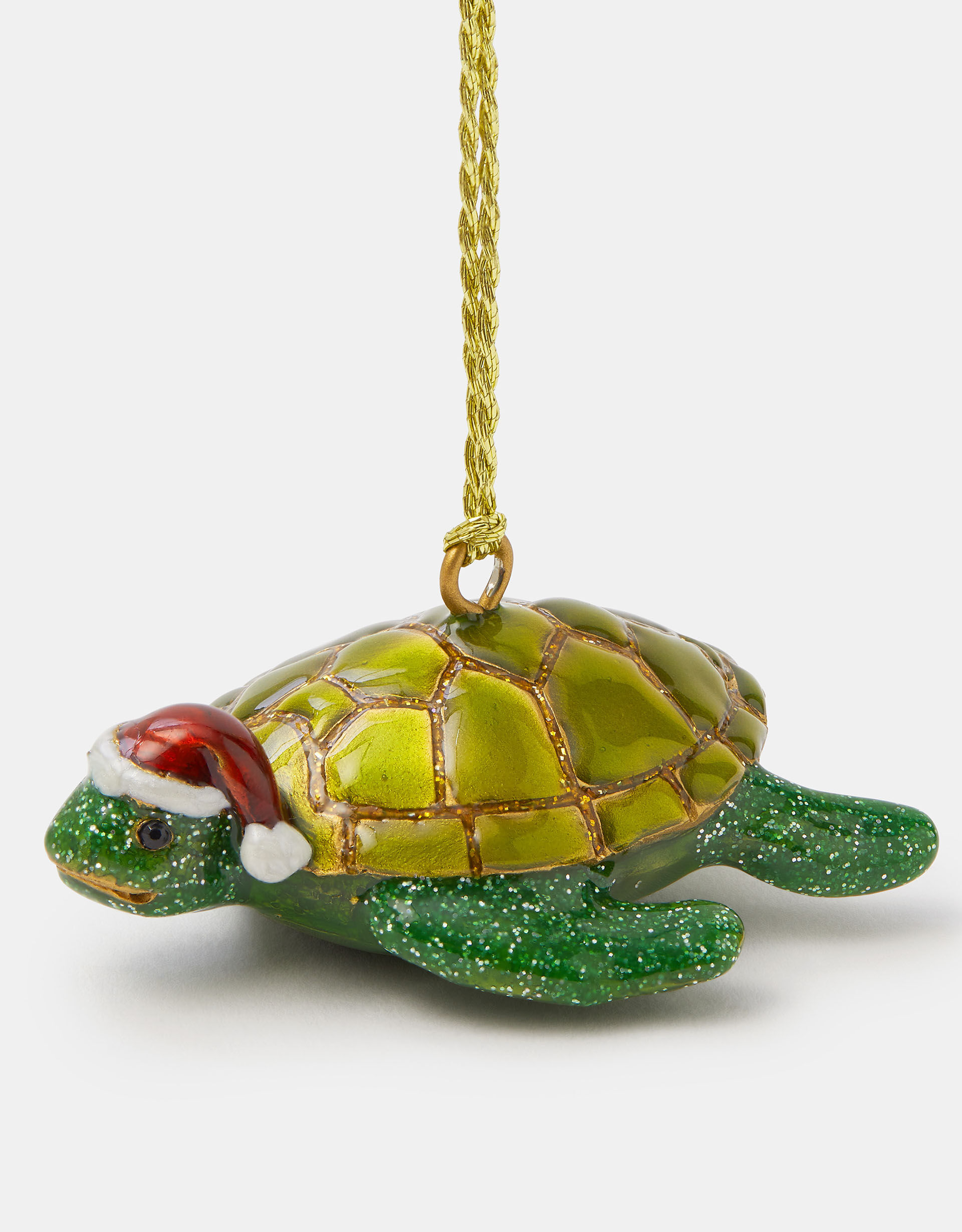 Bring the magic of the sea to your tree! Made in shiny enamel with glitzy finishes, this turtle is wearing a Santa hat to really dive into the festive spirit.