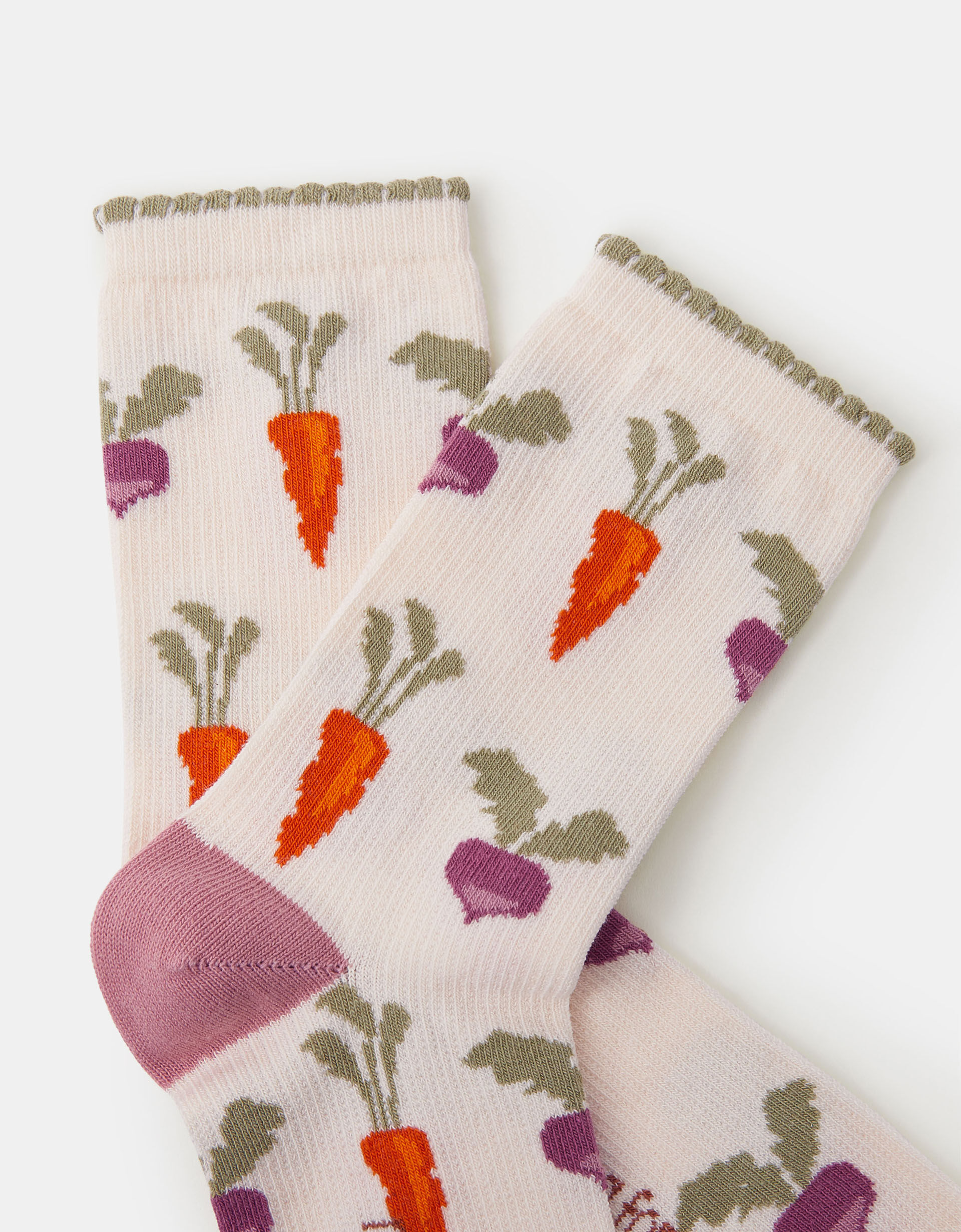 Oh my gourd! Designed in a soft cotton blend, these socks feature a playful print of carrots and turnips with a punny slogan at the soles.