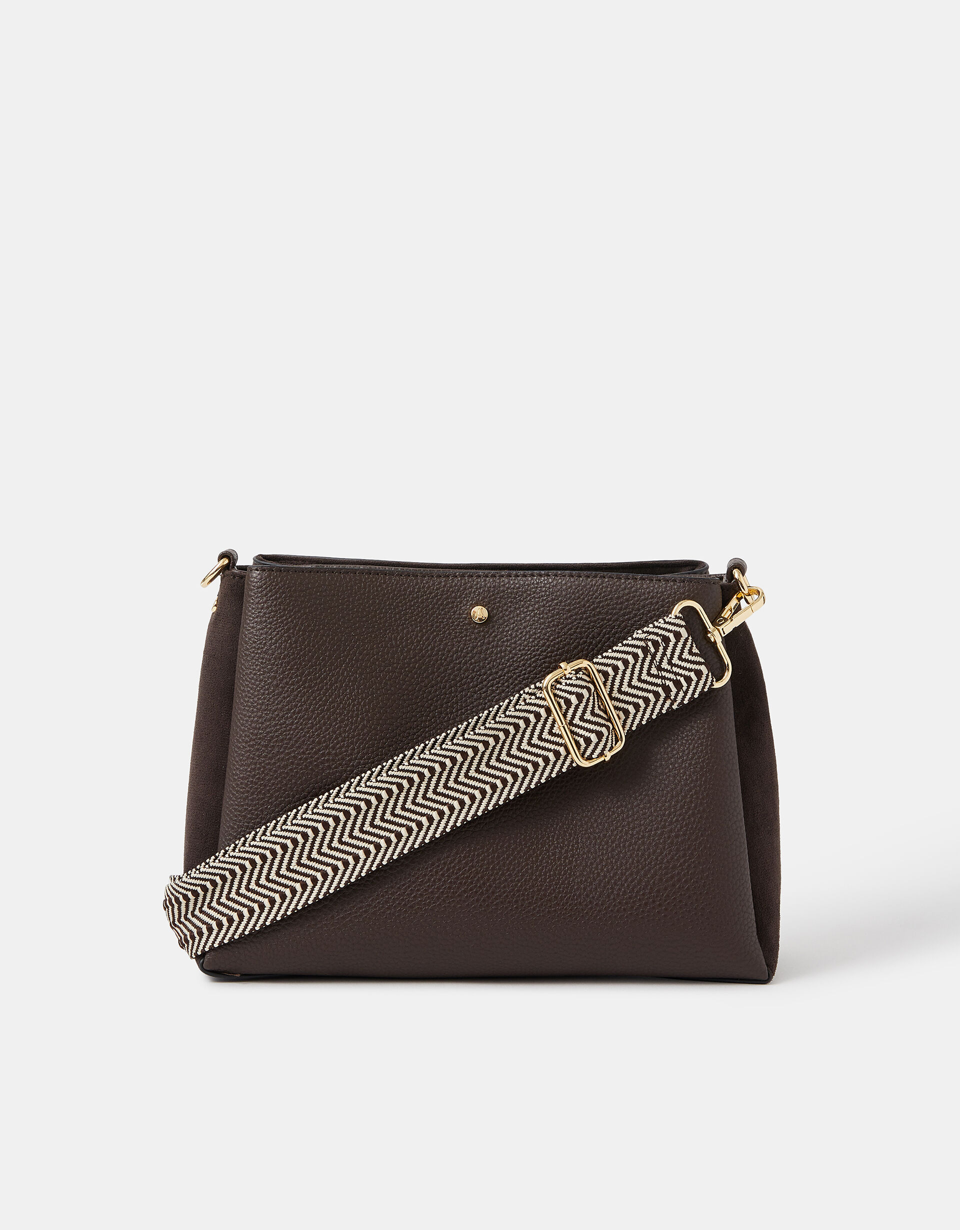 Protect the goods in style with this crossbody bag. Designed in faux leather with a pebbled finish, it’s shaped with structure and comes with a detachable (and adjustable) webbing strap. Undo the magnetic button fastening to find three main compartments and a small zip pocket inside. A customisable style: this bag has a removable strap, meaning you can change up the design…every day of the week! From understated neutrals to punchy prints, why not take a look at our curated bag straps?
