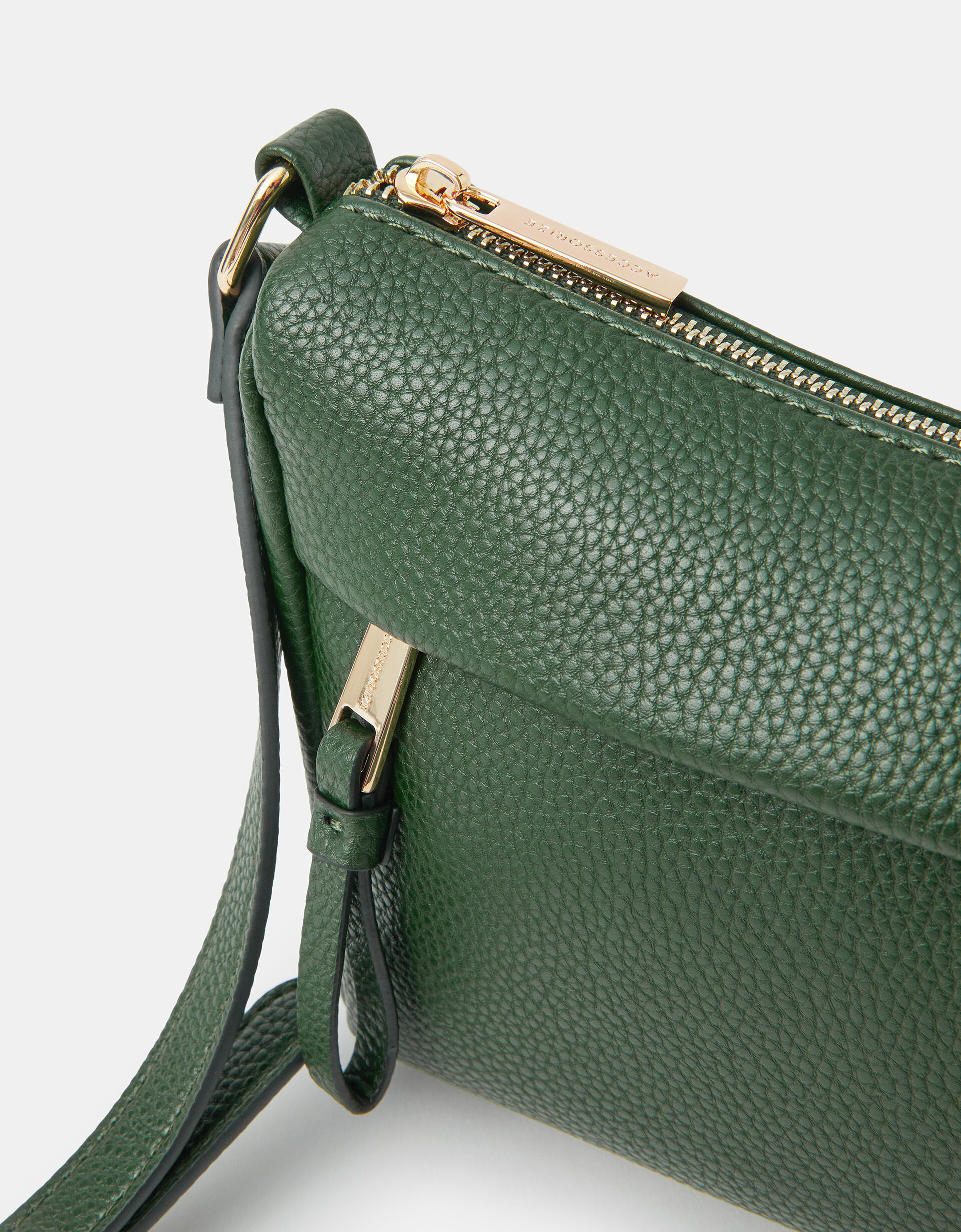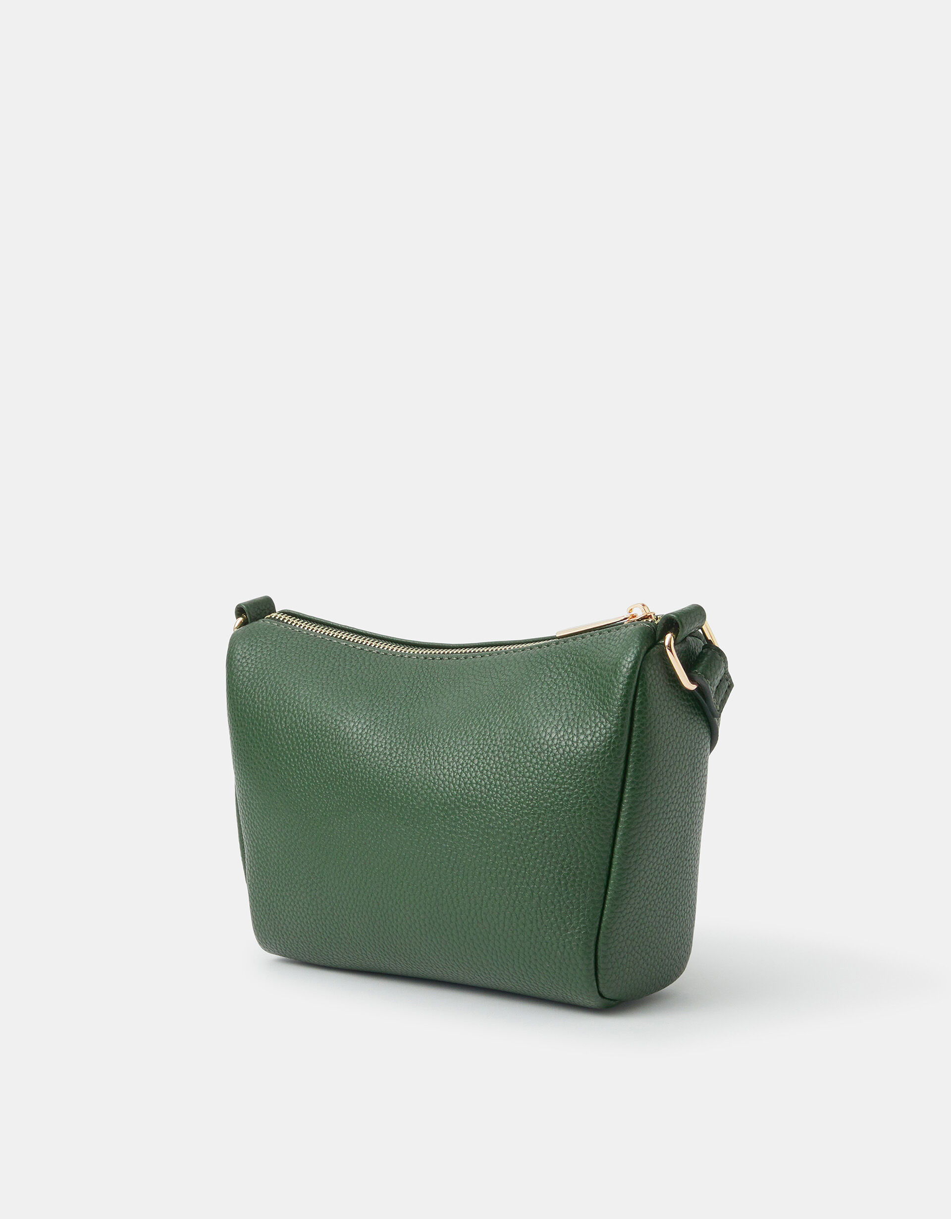 An essential to keep forever. Made from smooth faux leather, this crossbody bag features a main zip compartment, front zip pocket and adjustable strap. Green
