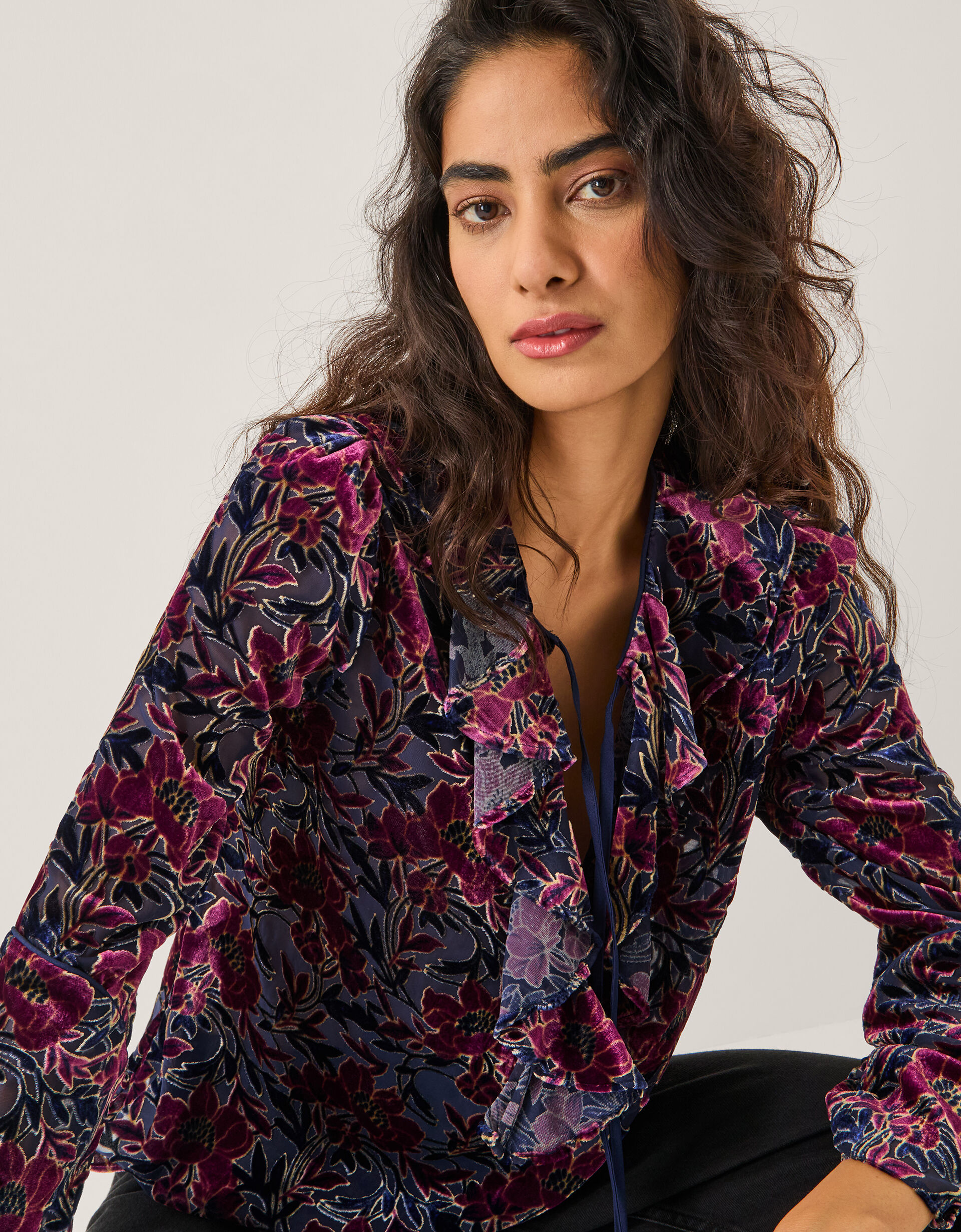 As evenings cool down, textures become your best styling tool. The Milena Devoré Ruffle Blouse and Dua Floral Devoré Blouse capture that autumnal opulence with their velvet finishes and romantic hues. Pair them with tailored trousers for the office or dress them up with leather and heels for an effortless evening look. These pieces prove that dressing for colder days doesn’t mean losing your shine.